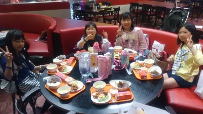 体験の合間を見て、ランチタイムです。ラージプレートはなかなかのボリューム(^o^) ハヤシライス、コーンスープ、チキン、ゼリー、りんごジュース! 「ほっぺが落ちます!」って((o(^∇^)o))