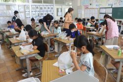 7.7 植物の生長 栄養師さん保健師さんによるおやつの指導(3年生)中休みの前に、3年生の保護者の方が、さつまいも畑の除草作業をしてくださいました。暑い中、本当にありがとうございました。