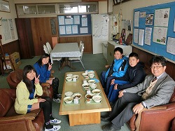 校長室での交流給食2日目です。男子がS.GさんとA.Kさん。女子がA.RさんとO.Aさんです。中学では「サッカー部」というGさん。1年生でも活躍を期待したいですね。A.Kさんはテニス部へ。すでに経験者なので、楽しみです。女子の二人は「まだ、決まっていません」とのこと。ゆっくりと考えて下さいね。