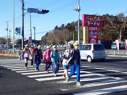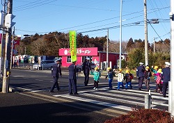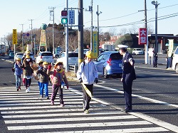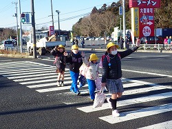 子供たちは、班長さんを先頭にして手を挙げて横断歩道を渡りました。交通量も多い51号線沿いですから、いっそうの交通安全の意識と行動が求められます。
