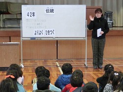 H先生は「伝統」の話を始めました。旭南小が「42年」の伝統があること。その「伝統」は、子供たちが「よりよく ひきつぐ」こと、です。