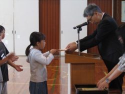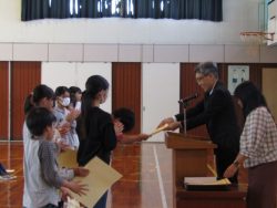 今日は、理科研究、読書感想文コンクール、テニス大会、みんなに進めたい一冊の本推進事業の表彰がありました。みんなよく頑張りました。