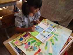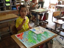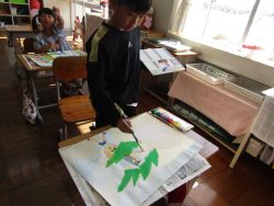 10.19 芸術の秋! 西校舎に活気が戻ってきました。3,4年生が、西校舎に戻りました。いつもの活気が戻ってきてよかったです。芸術の秋で、本を読んだり図工の作品を仕上げている学年が多かったです。今日も秋晴れです。 1年生 図工