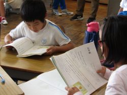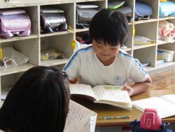 3,4年生が、西校舎に戻りました。いつもの活気が戻ってきてよかったです。芸術の秋で、本を読んだり図工の作品を仕上げている学年が多かったです。今日も秋晴れです。