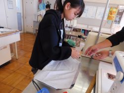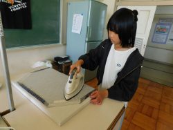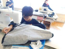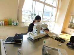 5年生はミシンの勉強です。エプロンづくりを頑張っています。