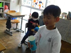 11月の終わりに、度学校に幼稚園児童や保育園児童が遊びに来るので、一緒に遊ぶためのおもちゃ作りをしています。楽しいおもちゃがいっぱいできました。