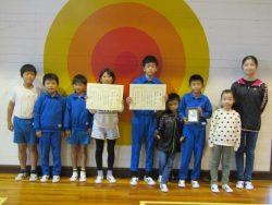 子ども会のキックベース大会の表彰がありました。柏熊新田・湯坪・勝下チームが鉾田市で第3位になりました。