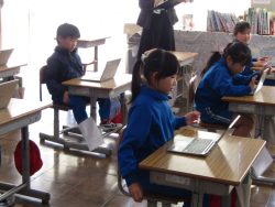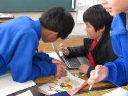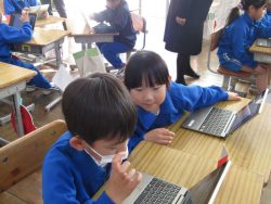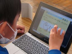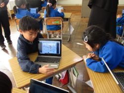 子供たちは、ICTを活用して、思考を深め、グループで話し合ったり教え合ったりしていました。