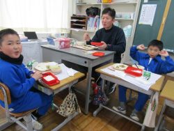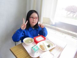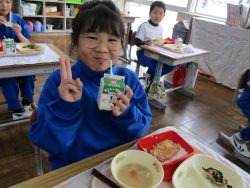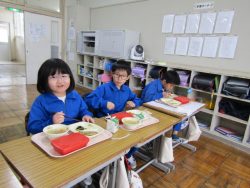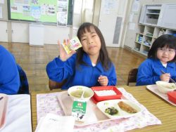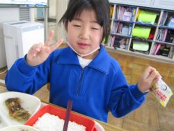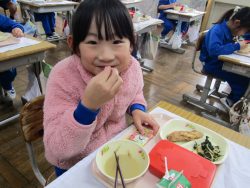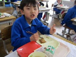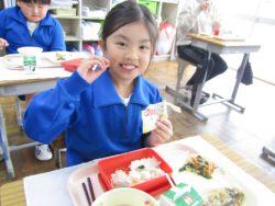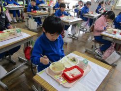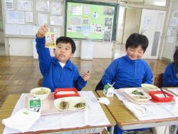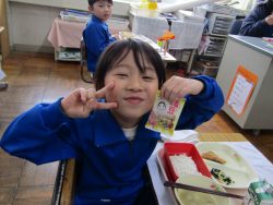 2.2 節分給食!1年生と2年生の給食の時間です。豆やいわしが出ました。節分の食文化の説明を給食委員がしてくれました。
