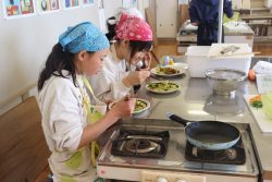 旭南小のシェフが勢ぞろい2月16日(金)に6年生が調理実習をしました。本日のメニューは野菜炒めです。おいしそうにできました。