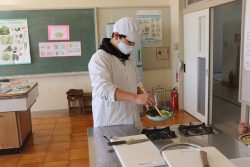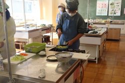 2月16日(金)に6年生が調理実習をしました。本日のメニューは野菜炒めです。おいしそうにできました。