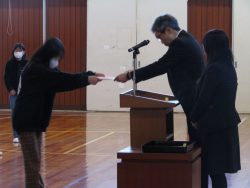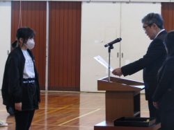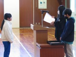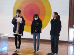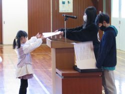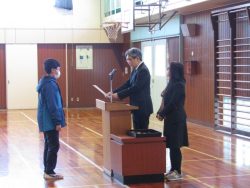 図書室の本をたくさん借りた人3人の表彰がありました。すばらしいですね!