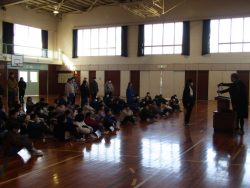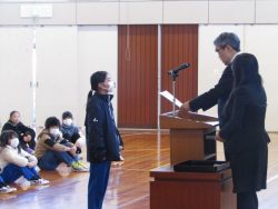 鉾田市教育会巡回子供展の表彰、みんなに進めたい一冊の本推進事業教育長賞、体力優良賞、スポーツ少年団テニス大会の表彰がありました。たくさんの子どもたちが表彰されました。また、図書委員会からも図書室の本をたくさん借りたお友達の表彰がありました。一番多い人で、85冊の本を借りたそうです。すばらしいですね!「本は心の栄養」とも言いますね。豊かな心を育てるためにも、引き続き本をたくさん読んでみましょう。