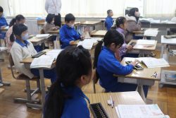 3.12 そろばん教室3年生今日は、3年生のそろばん教室がありました。2人の郵便局長さんがいらっしゃって、丁寧に教えていただきました。子供たちも意欲的に頑張っていました。
