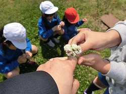予想通りの答えが返ってきました。けっこう「爪のような花びら」だから「つめくさ」と思っている人がいます。でも、それは不正解です。そこで、子供たちに、次のような話をしました。