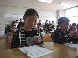 ▼ 2年生は、こくご。教科書のはじめの学習「ふきのとう」の朗読です。それぞれ、読み方のめあてをもって、しっかりと読むことができました。