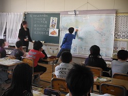 ▼ 5年生は社会です。世界地図をつかって、「H旅行社」の旅を楽しみました。(^_^)v 「キムチ」料理がある国は、どこでしょう? などなど。