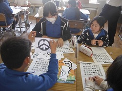 ▼ 6年生は算数。線対称、点対称の図形の学習です。都道府県のマークを使って、学習しました。茨城県のマークは・・線対称でも、点対称でもありませんね。