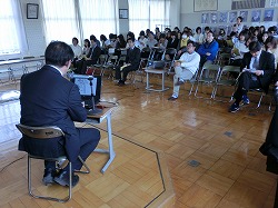 昨年度、携帯電話・スマホやゲームの実態を調査、アンケートなどを実施して、本校独自に作った「旭南小ルール」。今回は、その経緯や内容について、T教務主任から保護者説明を実施しました。