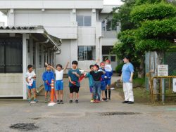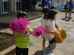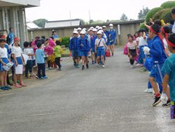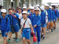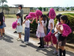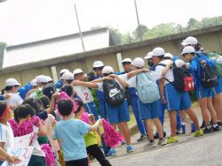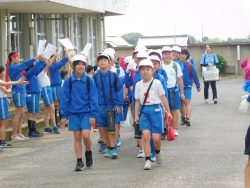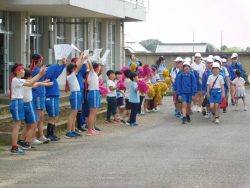 旭南小学校では、5,6年生に「がんばってきてね」と出発の時にみんなでエールを送りました。
