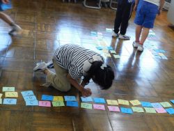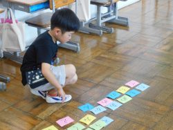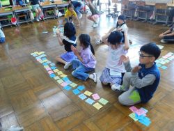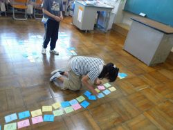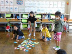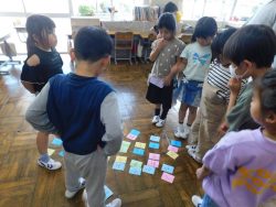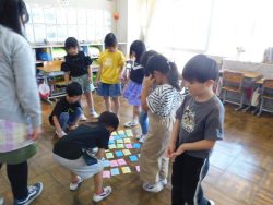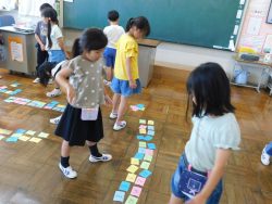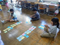 6月4日(火)あいうえおで遊ぼう(^_-)-☆1年生は国語で「あいうえお・・・」を学んでいます。 今日はカードを使って言葉づくりゲームを楽しんでいました。