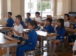 きれいな音を出すには、姿勢も大事ですし、息の入れ方も大事です。子ども達は、とても真剣に学んでいました。きっと、上手に吹けるようになることでしょう。