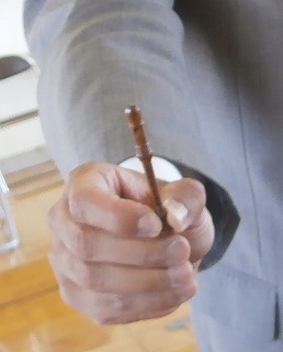 ところで、Nさんが最後に見せてくれたのが、このリコーダーです!! (^o^) ほら、手に持っているでしょう。鉛筆ではありません。これは、ちゃんとしたリコーダーなんだそうです。えっ、よくわからないって?