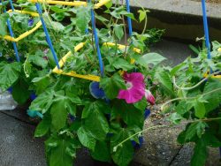1年生の育てている朝顔がきれいに花を咲かせています。