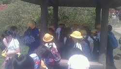 登山開始からわずか20分程度で、第一回目の休憩です。実は、つつじケ丘からの登りは、最初がつらいところです。