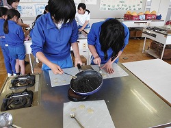 6校時、本校舎にあま~い香りが広がってきました。はて? と香りのするほうに誘われてたどり着いたのは、家庭科室です。(*’▽’) クラブの時間で、ここは「家庭クラブ」が活動しているのでした。(*^^)v