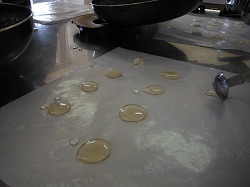 はい! これは砂糖と水で作った「べっこう飴」です。このまま透明に固まれば、完成!! このクラブの時間には完全には固まらないようなので、持ち帰りは明日ということになりました。(‘◇’)ゞ