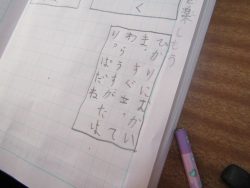 1年生と3年生は詩をつくる学習をしていました。 1年生は、○○のゆめについて考えていました。