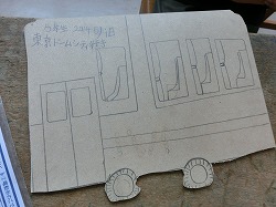バスをデザインしているのは、O.Hさんです。「東京ドームシティ行き」と書いてあります。このバスは明日(5月9日)の東京遠足のバスですね。いい感じです(^o^)