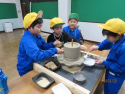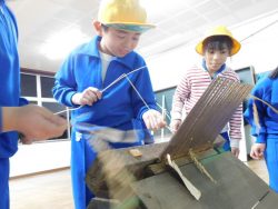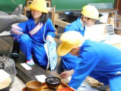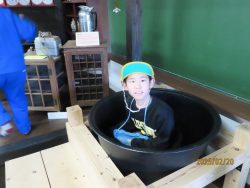 子供たちは、とくしゅくの杜の先生のお話や昔の道具に目を輝かせていました。