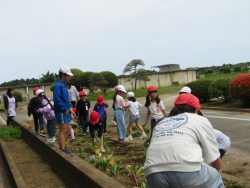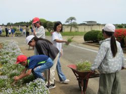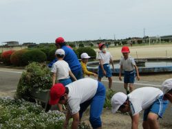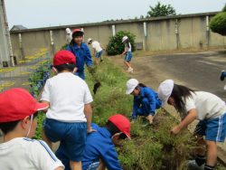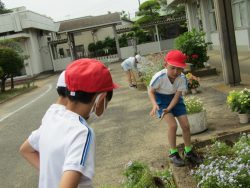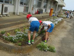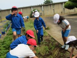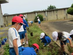 お昼の放送で、花壇の花ぬきボランティアをお願いしたところ、たくさんの子どもたちが集まり、花壇をきれいにしてくれました。