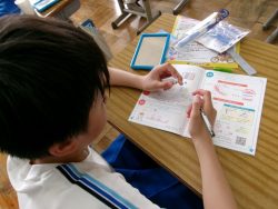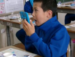 5年生が全国歯みがき大会に参加し、保健の先生の指導のもと、動画を活用して、歯みがきの仕方について学びました。