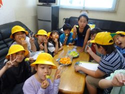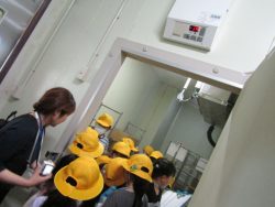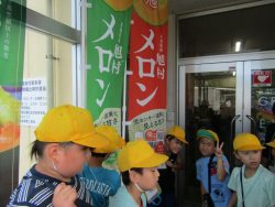 はじめに、JA茨城旭村青果物管理センタ―でメロンが光センサーを通り、大きさや糖度別に分けられて箱詰めされる過程を実際に見学させていただきました。