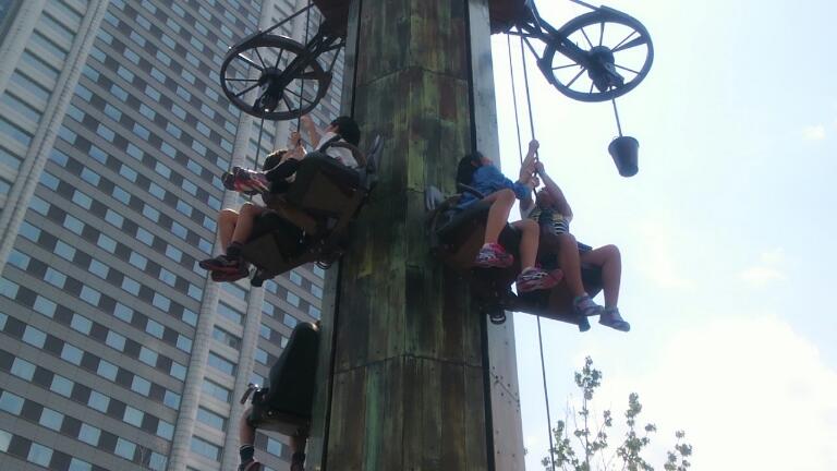 自分たちでロープで昇ります(。>д<) たいへんです!パワーが必要てすが、私たち力持ちですから、大丈夫てす!