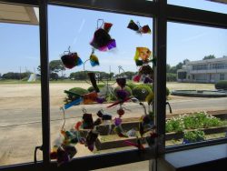 1年生は国語でした。教室の窓に素敵な作品が飾ってありました。