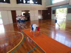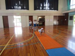 4年生は体育でした。マット運動をがんばっていました。