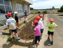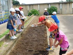 6月23日(月)ひまわりの種を蒔いたよ(^^)/1年生が、ひまわりプロジェクトの種を2年生教室前の花壇にまいてくれました。 旭南小学校にも、ニコニコひまわりの花が咲くのが楽しみです!!!