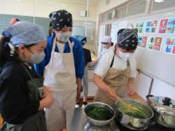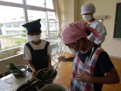 6月25日(水)調理実習(^_-)-☆5年生が調理実習を行いました。 ほうれん草のおひたしと、塩こしょうだけのシンプルゆでじゃがを作りました。 とても楽しい実習になりました。