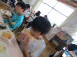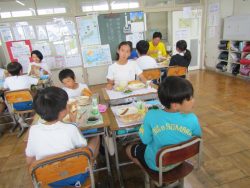 できた料理は、給食と一緒にみんなで食べました(^_-)-☆ 子どもたちの顔は「顔晴る笑顔(^_-)-☆」でした🎵