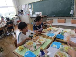 できた料理は、給食と一緒にみんなで食べました(^_-)-☆