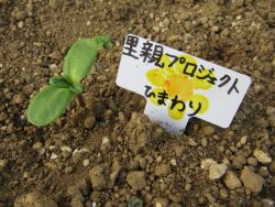 1年生が蒔いた学校のひまわりの種も芽が出はじめました(^_-)-☆