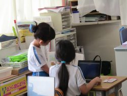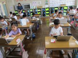1年生 国語の音読をPCに録音して提出する学習をしていました。