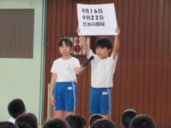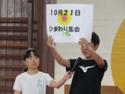 次に児童会からひまわりプロジェクトの種の集め方についての説明がありました。