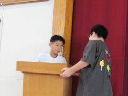 9月9日(火)全校朝会\(^_^)/全校朝会がありました。 まず始めに、読書50冊達成児童の表彰がありました。 次に児童会からひまわりプロジェクトの種の集め方についての説明がありました。 保護者の皆様のご協力をいただき、それぞれのご家庭で大きく育ったひまわり。 いよいよ種を集めて福島に送ります。 どうぞよろしくお願いいたします。