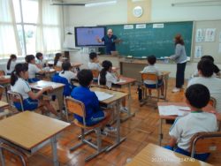 10月6日(月)訪問指導5時間目に訪問指導がありました。 子どもたちが楽しく学び合う様子を見ていただきました。 子どもたちのつぶやきや笑顔が多く見られ、指導にいらした先生方もにこやかに参観していらっしゃいました。