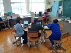 10月21日(火)宿泊学習オンライン打ち合わせ\(^_^)/6年生が、宿泊学習の班ごとの打ち合わせをオンラインで行い、自己紹介や係決めを行いました。 旭地区の小学校4校合同班のため、子どもたちはわくわくドキドキです! お互いのいいところをたくさん知って、良い思い出をたくさん作って欲しいと思います。